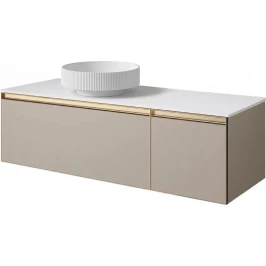 Тумба с раковиной Armadi Art Quatro Daphne 790-M2-140-D-MG + 792-140-W + 801-R-MW 141 см L, подвесная, со столешницей, бежевый матовый