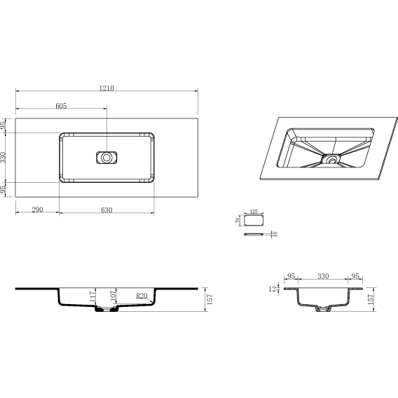 Раковина Armadi Art Quatro Matt White 793-120-W 121x52 см, накладная, белый матовый