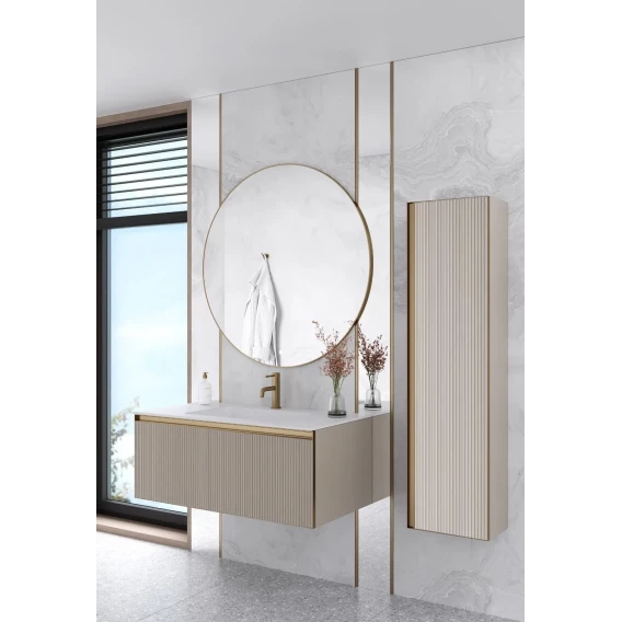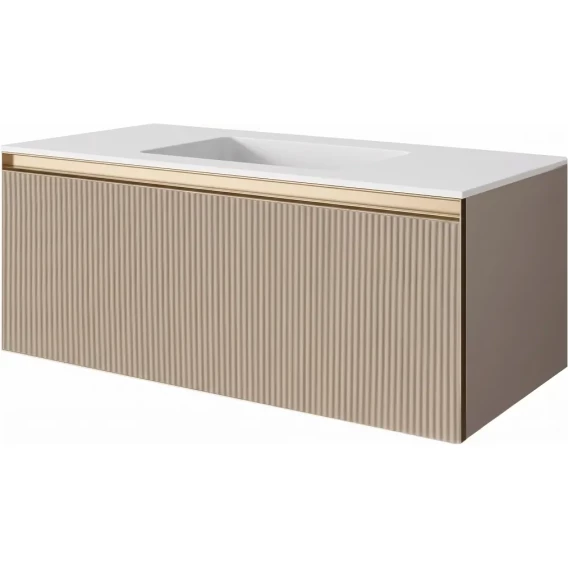 Тумба под раковину Armadi Art Quatro Daphne Fuga 790-M1-120-RIB-D-MG-LED 120 см, подвесная, с подсветкой, бежевый матовый