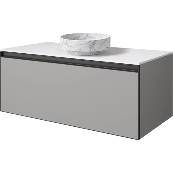 Тумба с раковиной Armadi Art Quatro Luna 790-M1-100-L-A + 792-100-W + 801-CLCT 101 см , подвесная, со столешницей, серый матовый