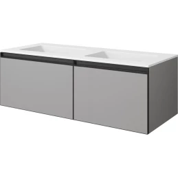 Тумба с раковиной Armadi Art Quatro Luna 790-M2-140-L-A-LED + 793-140-W-A 141 см L, подвесная, с подсветкой, серый матовый