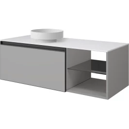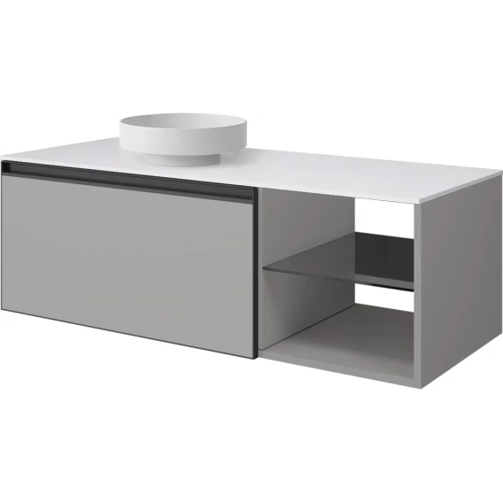 Тумба с раковиной Armadi Art Quatro Luna 790-M6-120-L-A + 792-120-W + 801-MW 121 см L , подвесная, со столешницей, серый матовый