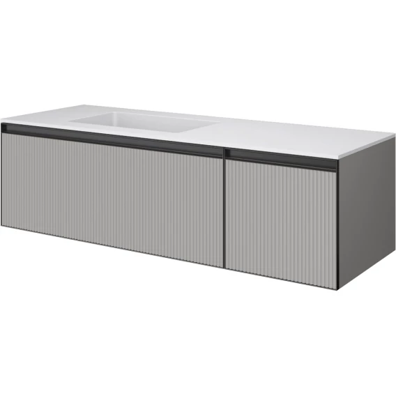 Тумба с раковиной Armadi Art Quatro Luna Fuga 790-M2-140-L-RIB-A + 793-140-W-A 141 см L, подвесная, серый матовый