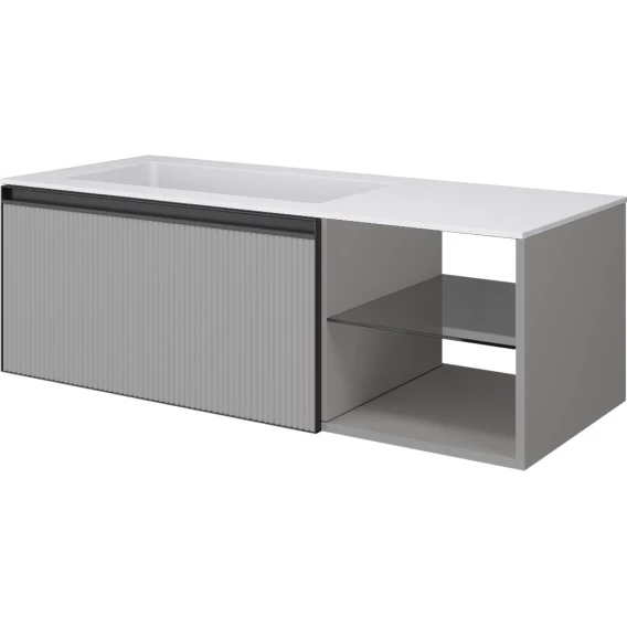 Тумба с раковиной Armadi Art Quatro Luna Fuga 790-M6-120-L-RIB-A + 793-120-W-A 121 см L, подвесная, серый матовый