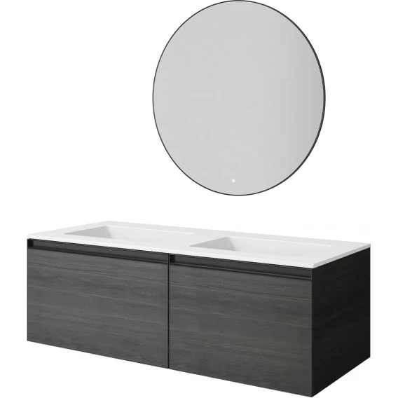 Тумба с раковиной Armadi Art Quatro Oak Antracite 790-M2-140(70+70)-OA-A+L + 793-140-2-W 141 см, подвесная, с подсветкой, темный дуб