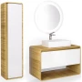 Тумба с раковиной белый/дуб 80 см Jorno Ronda Ron.01.80/P/D-W + Y18293