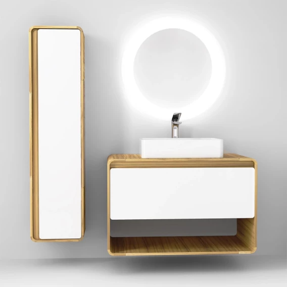 Тумба с раковиной белый/дуб 100 см Jorno Ronda Ron.01.100/P/D-W + Y18293