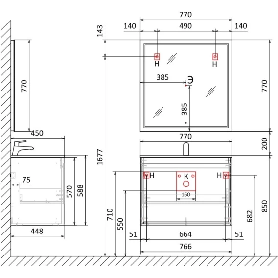 Механизм доводчика, Ящик, Полочка, Тумба под раковину, Раковина