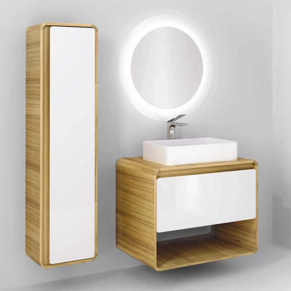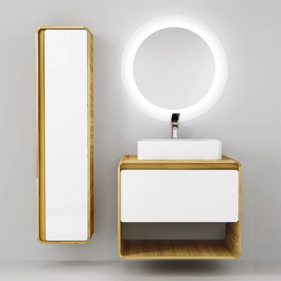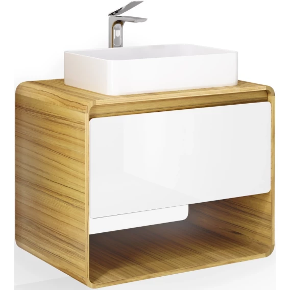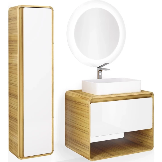 Тумба с раковиной белый/дуб 80 см Jorno Ronda Ron.01.80/P/D-W + Y18293