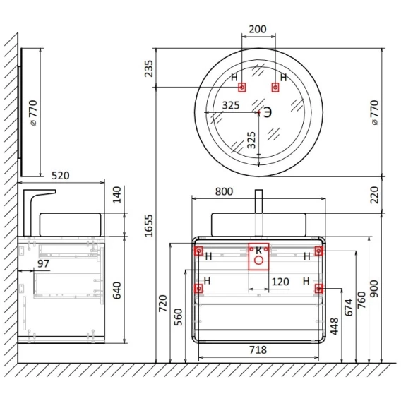 Механизм доводчика, Ящик, Полочка, Столешница, Тумба под раковину, Раковина
