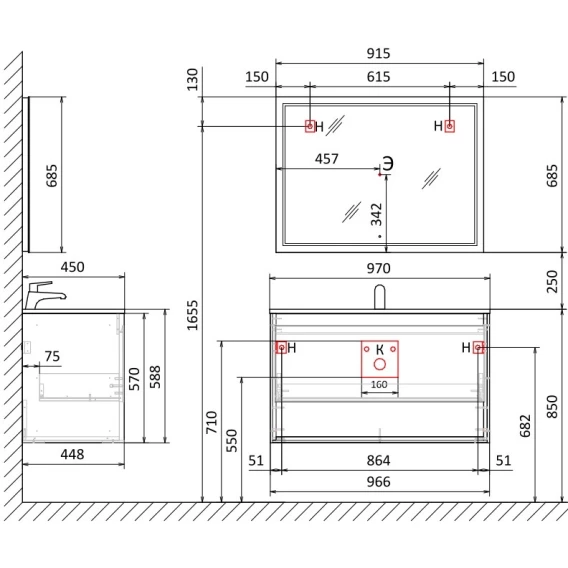 Механизм доводчика, Ящик, Полочка, Тумба под раковину, Раковина