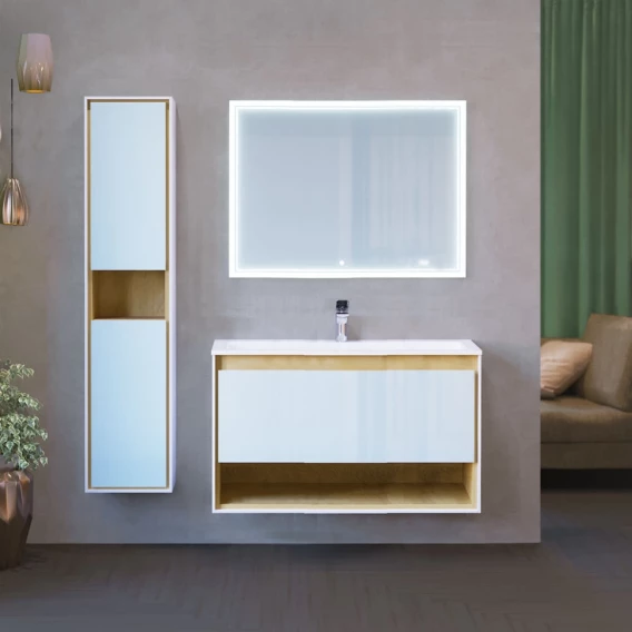 Тумба с раковиной белый/дуб 97 см Jorno Glass Gla.01.97/P/W + Mol.08.100/W