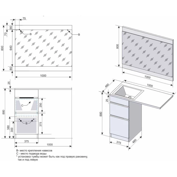 Тип мебели Тумба с раковиной