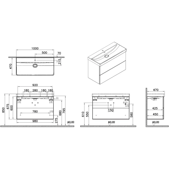 Тумба с раковиной белый глянец 100 см VitrA Metropole Pure 67333