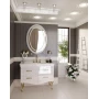 Прекрасная в своей индивидуальности напольная тумба для ванной комнаты Onika Адель 105 - беспроигрышный компромисс между красотой и функциональностью, классической внешностью и современным содержанием.Необычная форма безупречно-белого глянцевого фасада удивительным образом гармонирует с яркой фурнитурой цвета состаренного золота визуально расширяет пространство и наполняет его светом.4 больших выдвижных ящика скрытого монтажа с доводчиками и полным выдвижением - отличное место для хранения всех необходимых в ванной комнате вещей.Фасад и боковины тумбы выполнены из ЛЛМДФ, покрытой стойкой глянцевой эмалью, устойчивой к механическим воздействиям, перепадам температур и высокой влажности.4 изогнутых ножки и 4 фигурных ручки цвета бронзы идут в комплекте с тумбой.Размеры тумбы без учета раковины и ножек: 98х45х54 см.