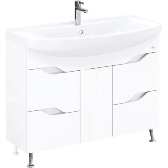 Каждая деталь напольной тумбы Onika Веронэлла 105 отражает индивидуальность владельца, создавая безупречный стиль в ванной комнате.Четыре вместительных выдвижных ящика, снабженные направляющими полного выдвижения, помогут организовать пространство в ванной комнате и компактно разместить необходимые вещи, а распашная дверь посередине, украшенная фрезеровкой и оснащенная системой открывания push-to-open, скрывает дополнительное место для хранения.Ручки, изящно интегрированные в ящики, позволяют сделать эксплуатацию мебели более удобной и практичной.Тумба выполнена из надежной ЛЛМДФ в пленке, устойчивой к механическим воздействиям, перепадам температур и высокой влажности.2 декоративные хромированные и 3 пластиковые ножки с регулировкой по высоте идут в комплекте с тумбой.