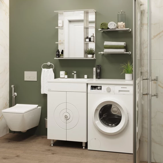 Напольная тумба Onika Космос 60 идеально подходит для небольших санузлов и станет прекрасным решением для совмещения со стиральной машиной.Фасад украшают 2 распашных фигурных двери, украшенные изящной фрезеровкой и снабженные системой плавного закрывания, за ними - большое пространство для хранения банных принадлежностей или бытовой химии, разделенное горизонтальной полочкой.Корпус тумбы выполнен из ЛДСП, фасад - из ЛМДФ в пленке, устойчивых к механическим воздействиям, перепадам температур и высокой влажности.Хромированная ручка и четыре ножки (2 декоративных хромированных и 2 пластиковых) идут в комплекте с тумбой.