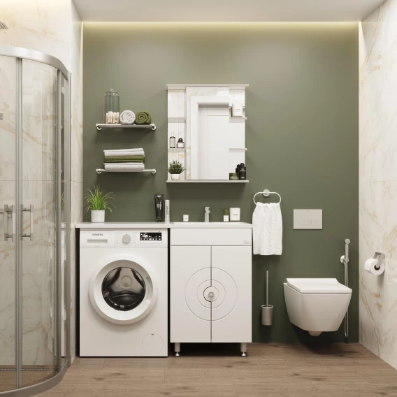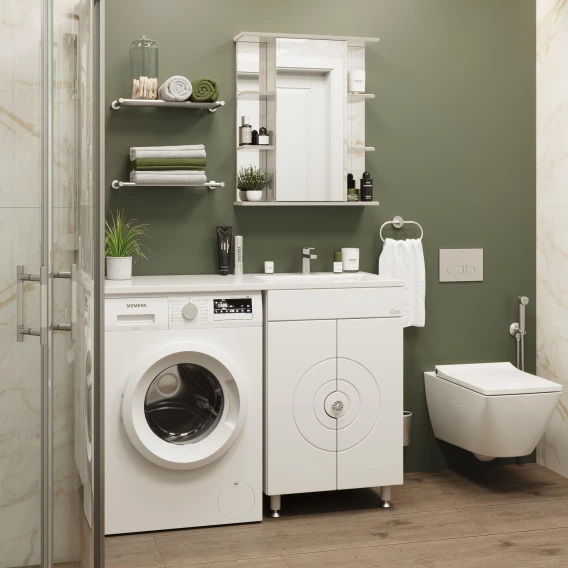 Напольная тумба Onika Космос 60 идеально подходит для небольших санузлов и станет прекрасным решением для совмещения со стиральной машиной.Фасад украшают 2 распашных фигурных двери, украшенные изящной фрезеровкой и снабженные системой плавного закрывания, за ними - большое пространство для хранения банных принадлежностей или бытовой химии, разделенное горизонтальной полочкой.Корпус тумбы выполнен из ЛДСП, фасад - из ЛМДФ в пленке, устойчивых к механическим воздействиям, перепадам температур и высокой влажности.Хромированная ручка и четыре ножки (2 декоративных хромированных и 2 пластиковых) идут в комплекте с тумбой.