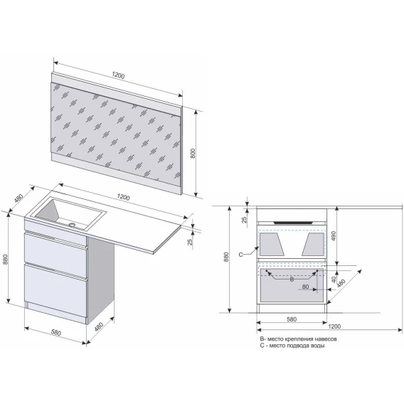Механизм доводчика, Ящик, Кронштейн, Тумба под раковину, Раковина