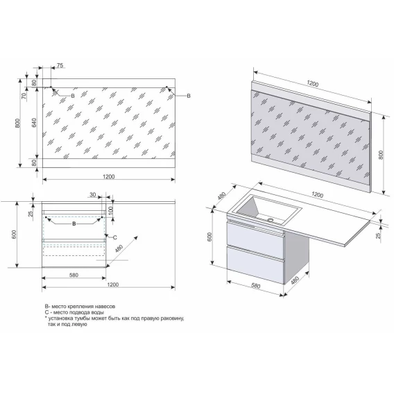 Механизм доводчика, Ящик, Кронштейн, Тумба под раковину, Раковина