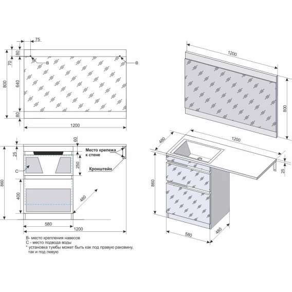 Механизм доводчика, Ящик, Кронштейн, Тумба под раковину, Раковина