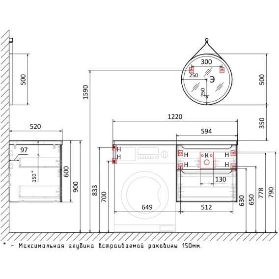 Крепление, Механизм доводчика, Ящик, Кронштейн, Столешница, Тумба под раковину, Раковина