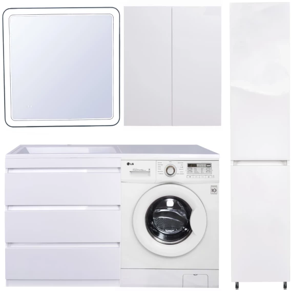 Тумба с раковиной белый глянец 140 см Style Line Даллас СС-00002221 + СС-00002220