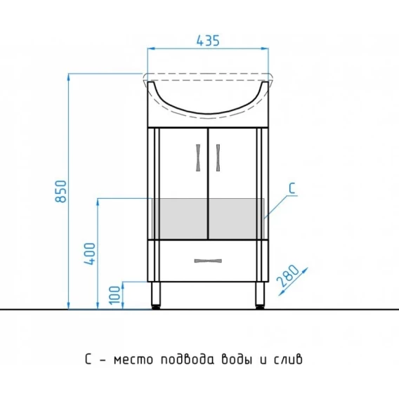 Механизм доводчика, Ящик, Полочка, Ручки, Ножки, Тумба под раковину, Раковина