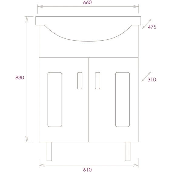 Тумба с раковиной белый глянец 66 см Onika Кристалл 106545 + 1WH109651