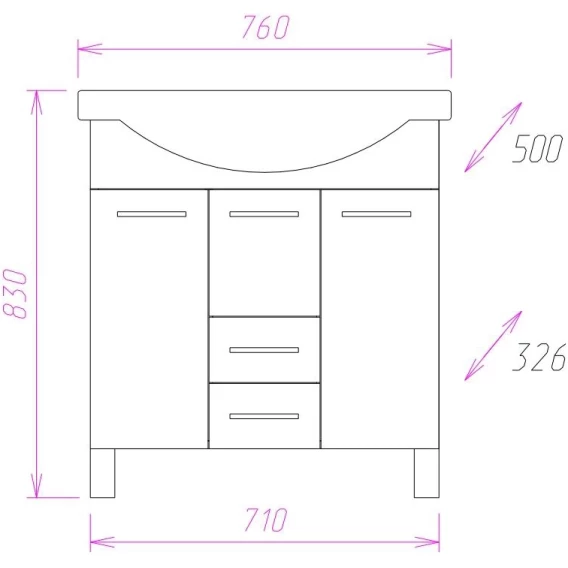 Onika Моника 75 - простая напольная тумба для ванной комнаты с обширным функционалом.Белая глянцевая поверхность, простые узкие ручки, отсутствие декора, лаконичная форма и минималистичный дизайн подойдет к любому интерьеру.Внутреннее пространство тумбы позволяет компактно разместить бытовые принадлежности: большие отсеки по бокам за распашными дверцами, два выдвижных ящика посередине. Маленькая откидная дверца по центру тумбы обеспечивает доступ к коммуникациям.Ящики тумбы оснащены направляющими полного выдвижения, а дверцы снабжены системой плавного закрывания.Корпус тумбы выполнен из ЛДСП, фасад - из ЛМДФ в пленке, устойчивых к механическим воздействиям, перепадам температур и высокой влажности.Пять хромированных ручек и четыре ножки (2 декоративных хромированных и 2 пластиковых) идут в комплекте с тумбой.