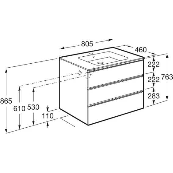 Тумба с раковиной белый глянец 80,5 см Roca The Gap A857406806 + 3279A4000