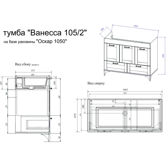 Механизм доводчика, Ящик, Полочка, Ручки, Ножки, Тумба под раковину, Раковина