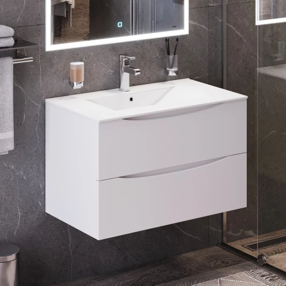 Тумба с раковиной белый матовый 81 см Bond Cube T01805-S05W
