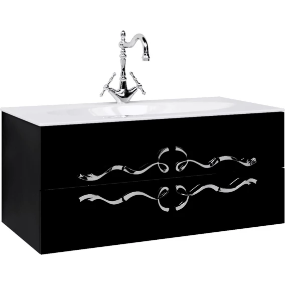 Тумба с раковиной черный глянец 100 см Clarberg Due Amanti DUE0110BLK + EL.10.04.D + DUER8CR