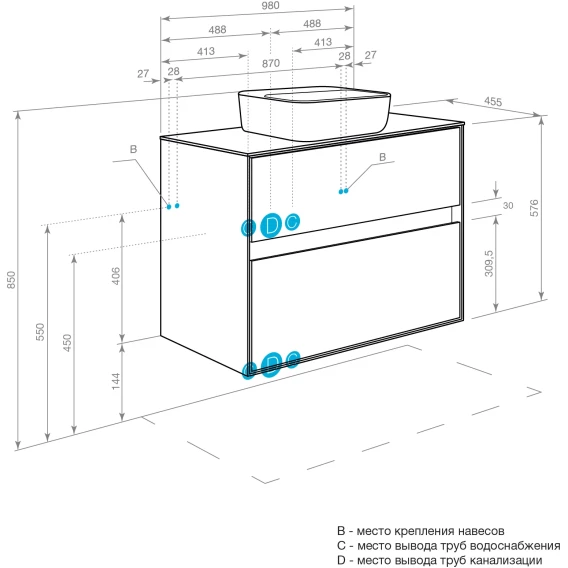 Механизм доводчика, Ящик, Система "Push-to-open", Столешница, Тумба под раковину, Раковина