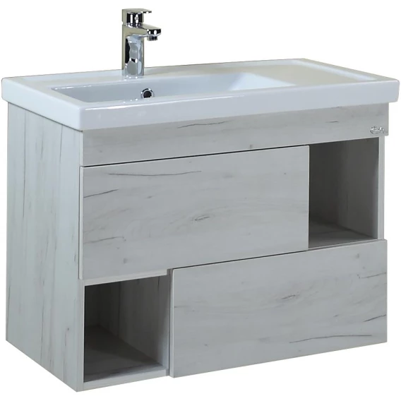 Подвесная тумба Onika Санторини 80 отражает актуальные тенденции в дизайне мебели для ванной комнаты: минимализм и геометрия фасадов, чёткость и лаконичность форм, отсутствие декора и стильный цвет белой древесины с текстурой дорогих пород.Два выдвижных ящика, оснащенные системой открывания push-to-open, внутри разделены на отсеки для удобной организации косметических средств и других аксессуаров. Две открытые полки по разным углам тумбы служат дополнительным пространством для хранения.Тумба выполнена из ЛДСП, устойчивой к механическим воздействиям, перепадам температур и высокой влажности, при этом она надежно крепится к стене и не занимает место на полу, не создавая при этом сложностей в уборке помещения.Подвесы для крепления тумбы - в комплекте.