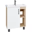 В тумбе Onika Тимбер 60 удачно сочетаются контрастные цвета и фактуры: белый матовый фасад с покрытием SoftTouch, корпус цвета дуба с роскошной текстурой, черная матовая металлическая фурнитура. Открытые полки справа обеспечивают быстрый доступ к часто используемым аксессуарам, а пространство за распашной дверцей слева, снабженной системой плавного закрывания, станет удобным местом для хранения различных бытовых принадлежностей.Корпус тумбы выполнен из ЛДСП, фасад - из ЛМДФ в пленке, устойчивых к механическим воздействиям, перепадам температур и высокой влажности.Черная металлическая ручка и 4 ножки (2 декоративных черных и 2 пластиковых) идут в комплекте с тумбой.
