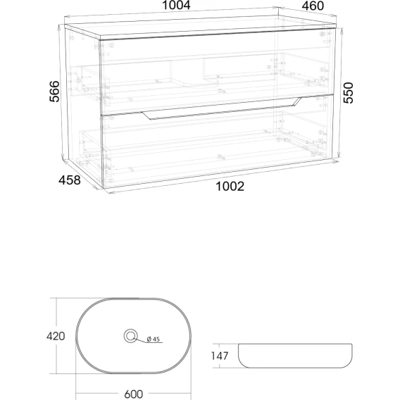 Механизм доводчика, Ящик, Столешница, Тумба под раковину, Раковина