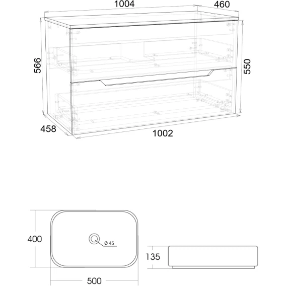 Механизм доводчика, Ящик, Столешница, Тумба под раковину, Раковина