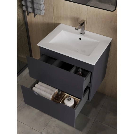 Тумба с раковиной Orange Line Li-60Tug+Ra 61,5 см, подвесная, графит матовый