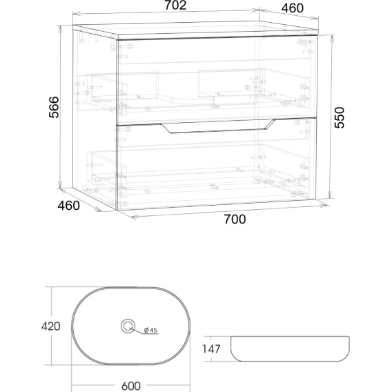 Механизм доводчика, Ящик, Столешница, Тумба под раковину, Раковина