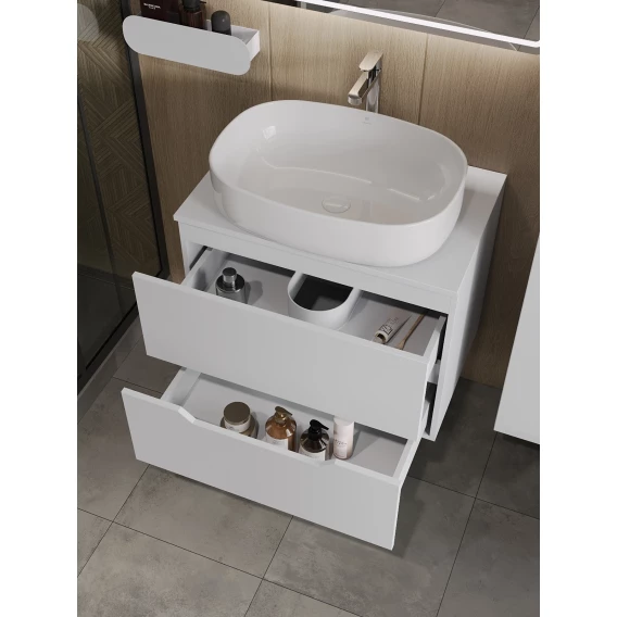 Тумба с раковиной Orange Line Li-70TuwMDF+B04-600W 70,2 см, подвесная, со столешницей, белый матовый