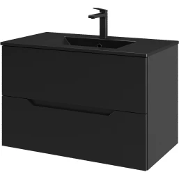 Тумба с раковиной Orange Line Li-80Tub+BLRA 81,5 см, подвесная, черный матовый