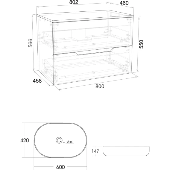 Механизм доводчика, Ящик, Столешница, Тумба под раковину, Раковина