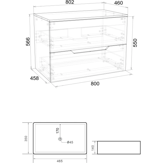 Механизм доводчика, Ящик, Столешница, Тумба под раковину, Раковина