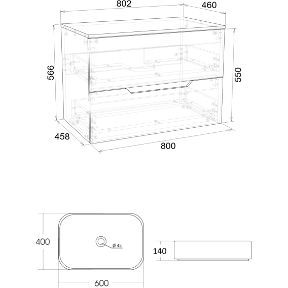Механизм доводчика, Ящик, Столешница, Тумба под раковину, Раковина