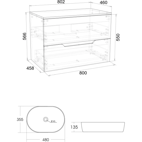 Механизм доводчика, Ящик, Столешница, Тумба под раковину, Раковина