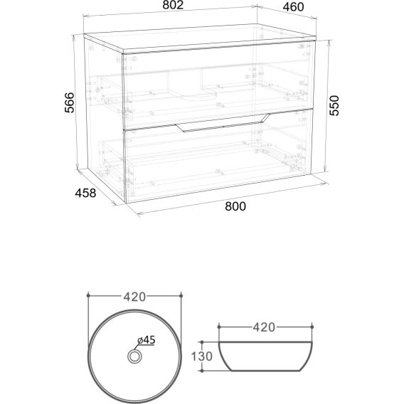 Механизм доводчика, Ящик, Столешница, Тумба под раковину, Раковина