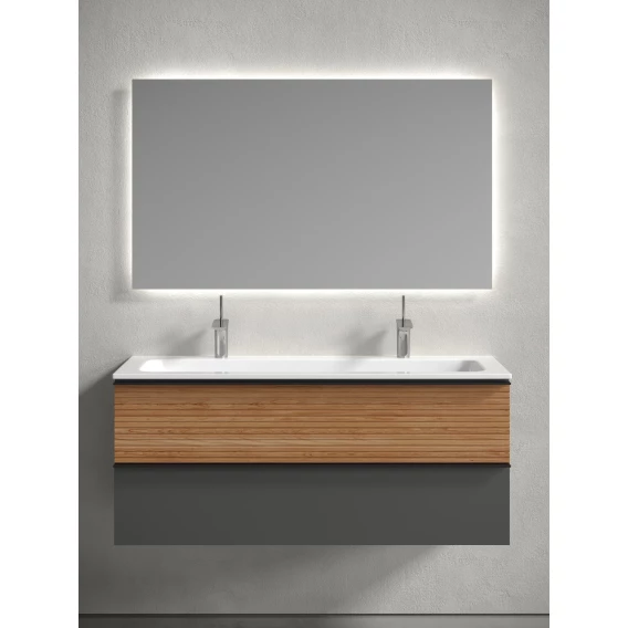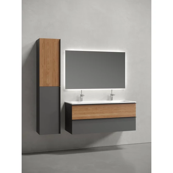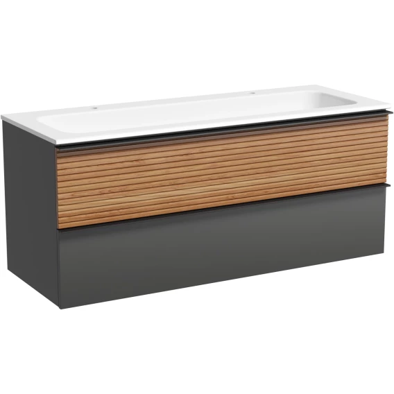 Тумба с раковиной Sancos Delta DL120GR + CN7016 121 см, подвесная, дуб красный/графит матовый