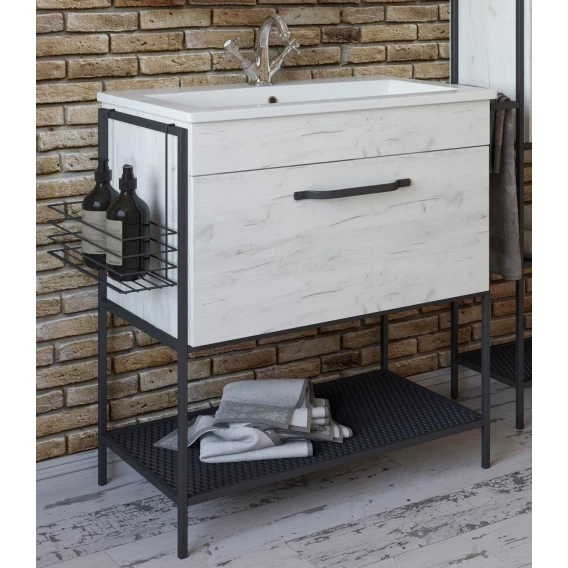 Тумба с раковиной дуб крафт/черный 86,5 см Sanflor Бруклин C16782